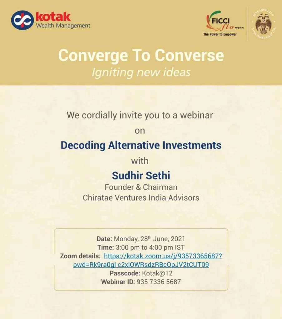 Speaker – Sudhir Sethi , Founder and Chairman of Chiratae VenturesTime – 3pmContact Person – flo@ficci.com