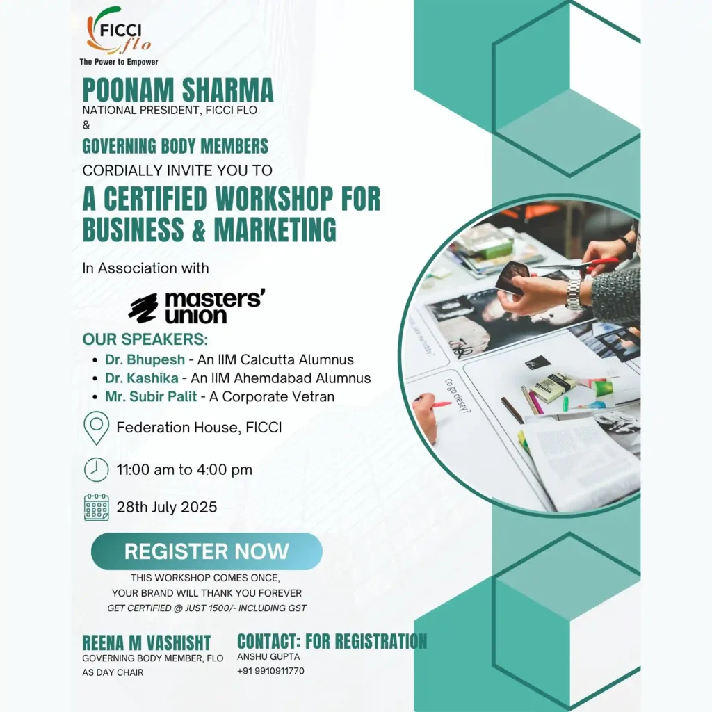 National Event A Certified Workshop for Business & Marketing 28 July 2025 11:00 AM to 4:00 PM Federation House, FICCI