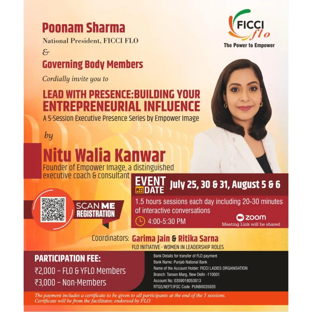 National Event Lead with Presence: Building Your Entrepreneurial Influence A 5-Session Executive Presence Series by Empower Image 25, 30 & 31 July; 5 & 6 August 4:00-5:30 PM