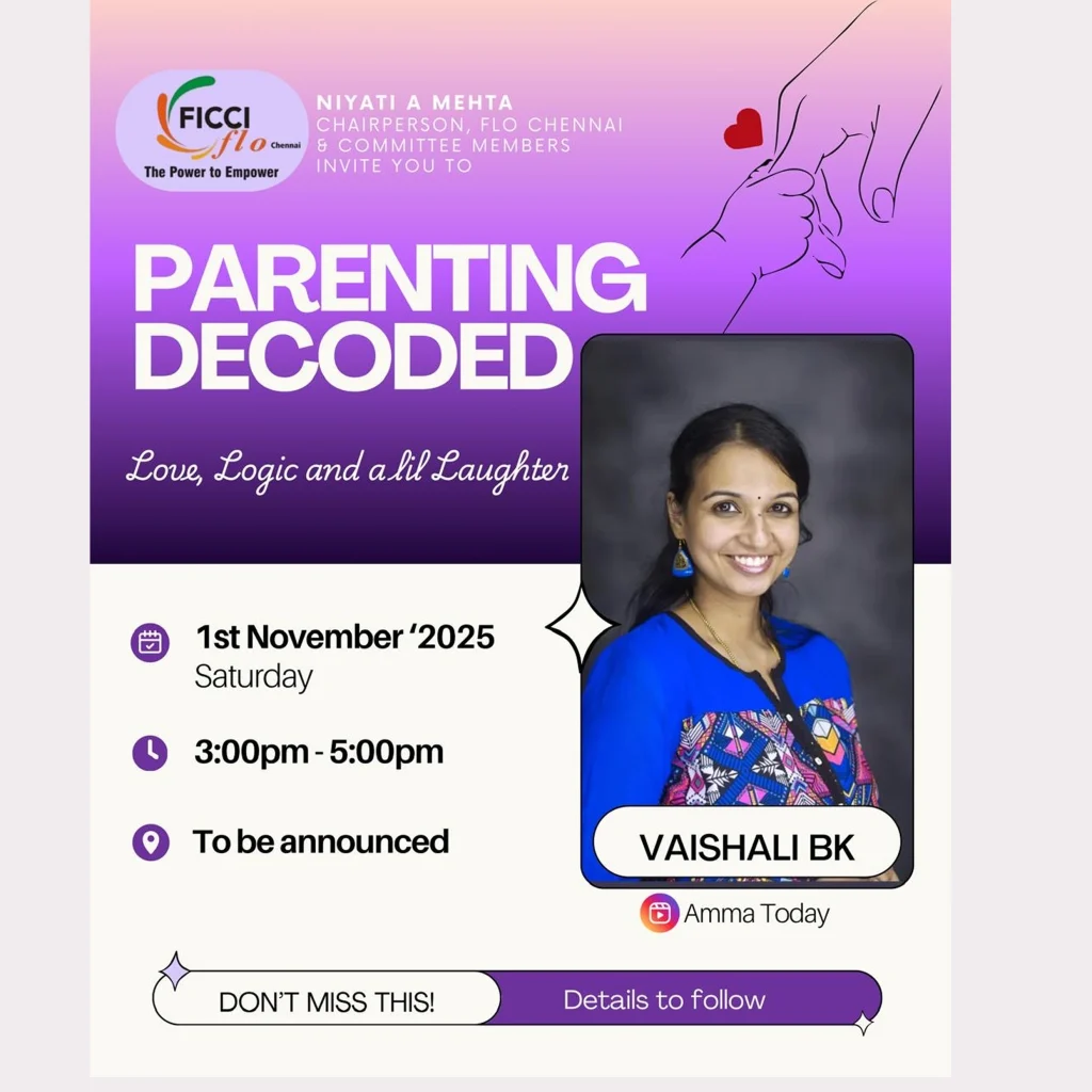 Chennai FLO Parenting Decoded Love, Logic and a lil Laughter Saturday, Nov 1 3:00 – 5:00 PM