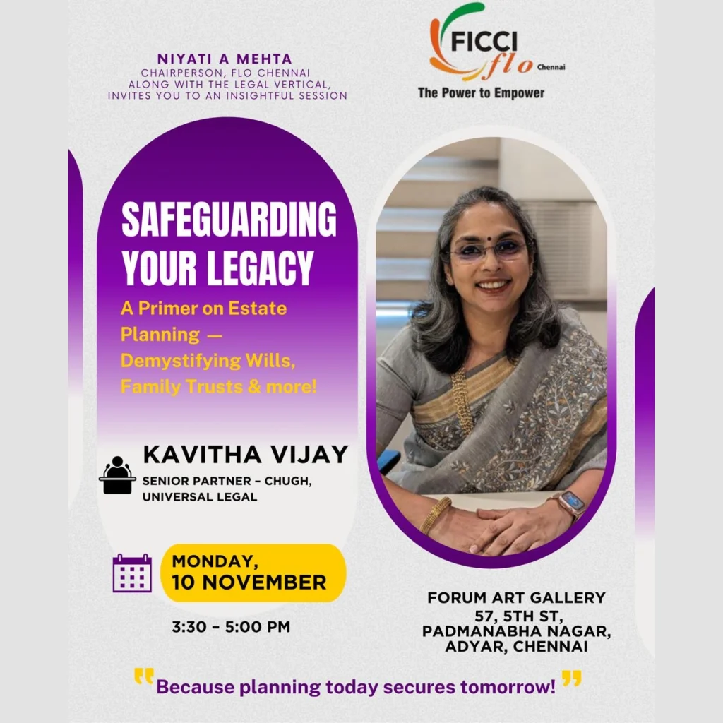 Chennai FLO Safeguarding Your Legacy A Primer on Estate Planning Demystifying Wills, Family Trusts & more! Nov 10, Monday