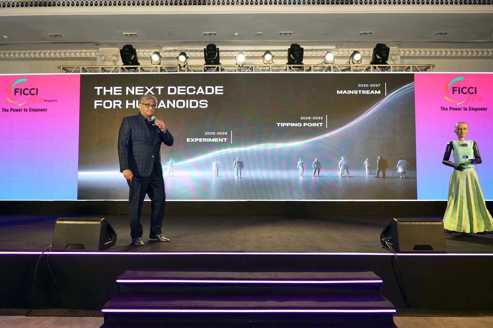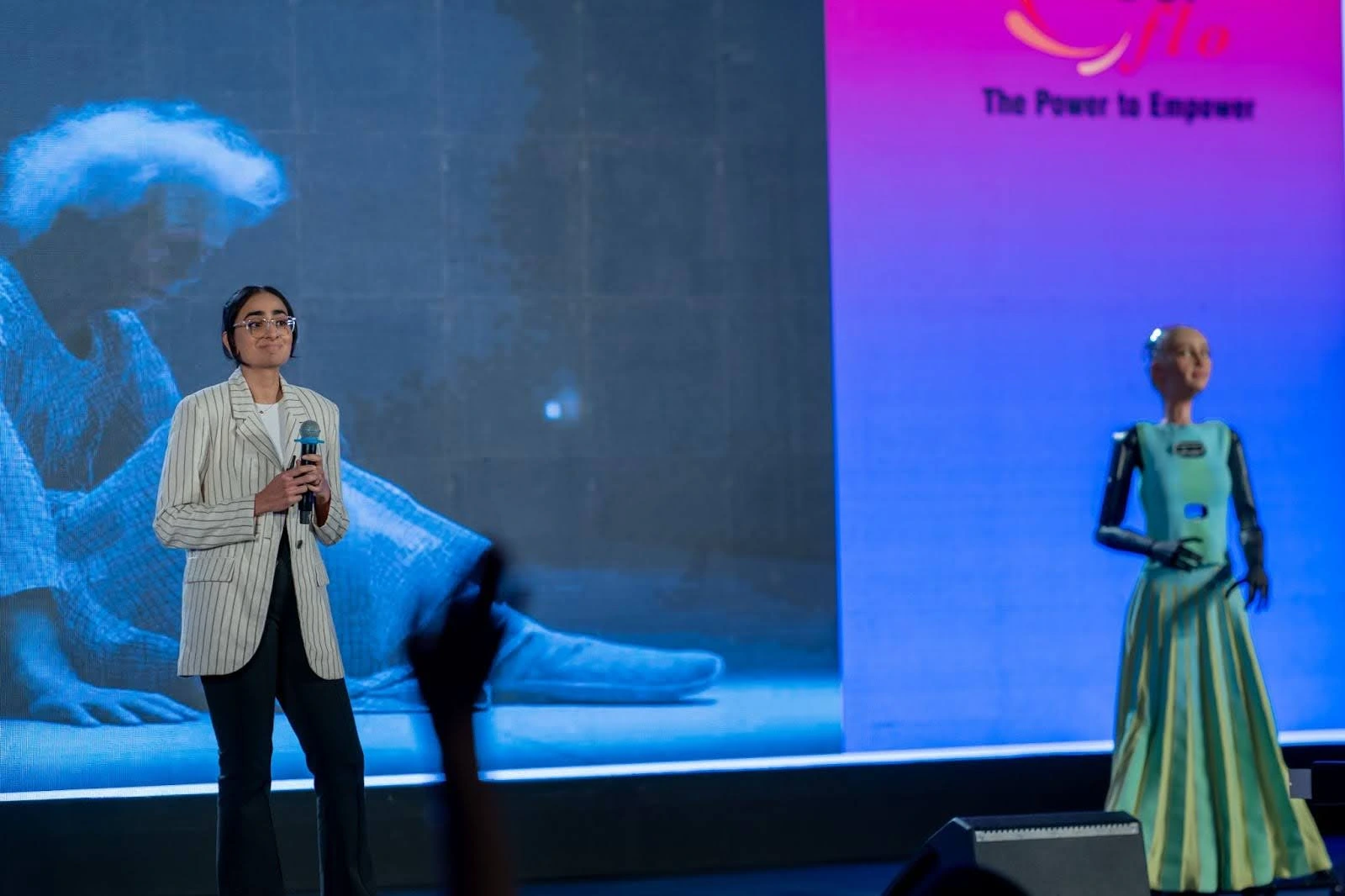 The speaker line-up reflected this balance. Dr. Vivek Raghavan, Co-founder of Sarvam AI, spoke on building India-first AI, focusing on language, scale, and sovereignty as foundational pillars for indigenous AI infrastructure. Ravi Machani and Trishika Raju of the Machani Group showcased R.I.A., the Humanoid, offering a compelling glimpse into how embodied AI is already creating real-world impact across sectors, and intelligence systems are evolving beyond IQ to include EQ and human context.