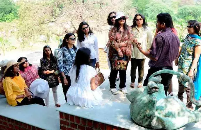 On October 27th 2010, FLO members visited Baroda to take an artistic tour of the “Retreat”, which is situated on the Mahi riverside. The Retreat organizes workshops for artists who stay and produce their artworks at site. On the same day FLO members received a Royal welcome at the Palace by Maharani Subhagini Raje. She enlightened members with the history of her ancestors as well as the palace itself. She also shared her commitment to the revival of Chanderi sarees. It was an exceptional experience for all members.
