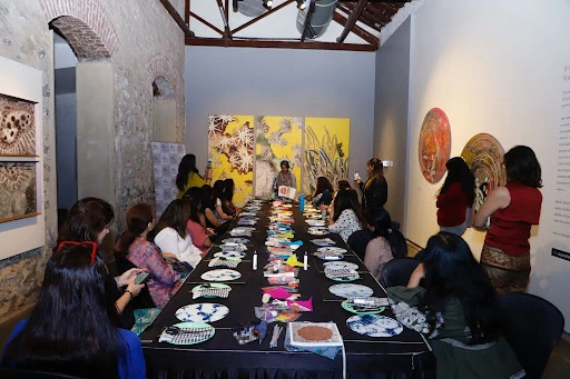 - FLO members participated in a hands-on art workshop to create personal pieces using paper cut-outs, laces, beads, paints, cotton buds, and incense sticks symbolising the fragile and textured nature of marine ecosystems.