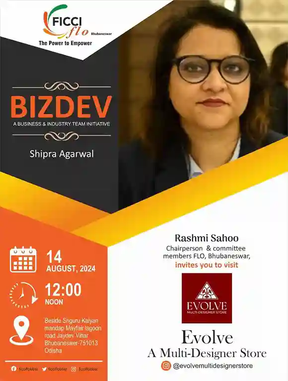 FICCI FLO, Bhubaneswar organized an exclusive event titled “BIZDEV”: Exploring the collection of EVOLVE; featuring conversations with its founder Shipra Agarwal under the National Initiative – FLO Business Exchange Initiative.