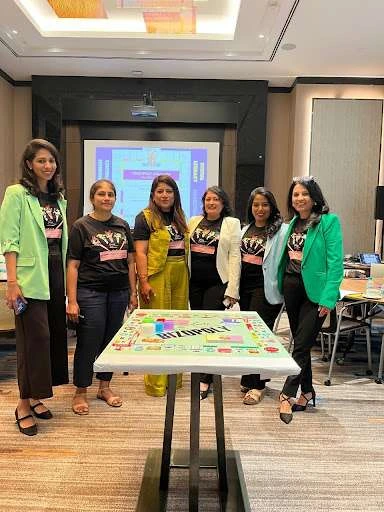 Chapter Chairperson Dr. Nupur Handa started the event with digital dice and a digital board. 5 teams played BIZOPOLY, On their feet and on the edge of their seats, they garnered resources across Finance, PR & Marketing, Digital, and Legal to solve specific business challenges posed to them in sectors of F&B, Feminine Sustainable Hygiene, Green Economy, and Fashion. Their pitches were evaluated by a distinguished jury: Past Chairpersons Ms. Namrata G and Dr. Swarnalatha Mallavarapu. Guests from FLO Ahmedabad also joined.