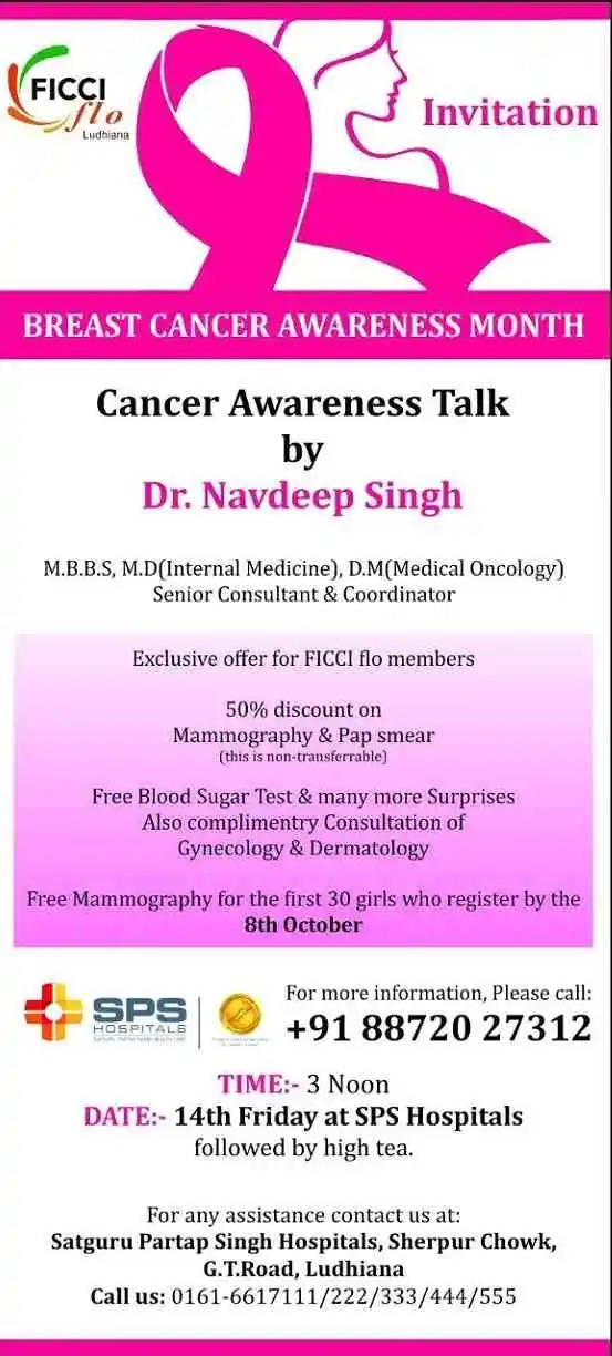 FICCI Ludhiana Organisation organised Breast cancer awareness on the 14 th of oct , in collaboration with SPS Hospitals for their members.
