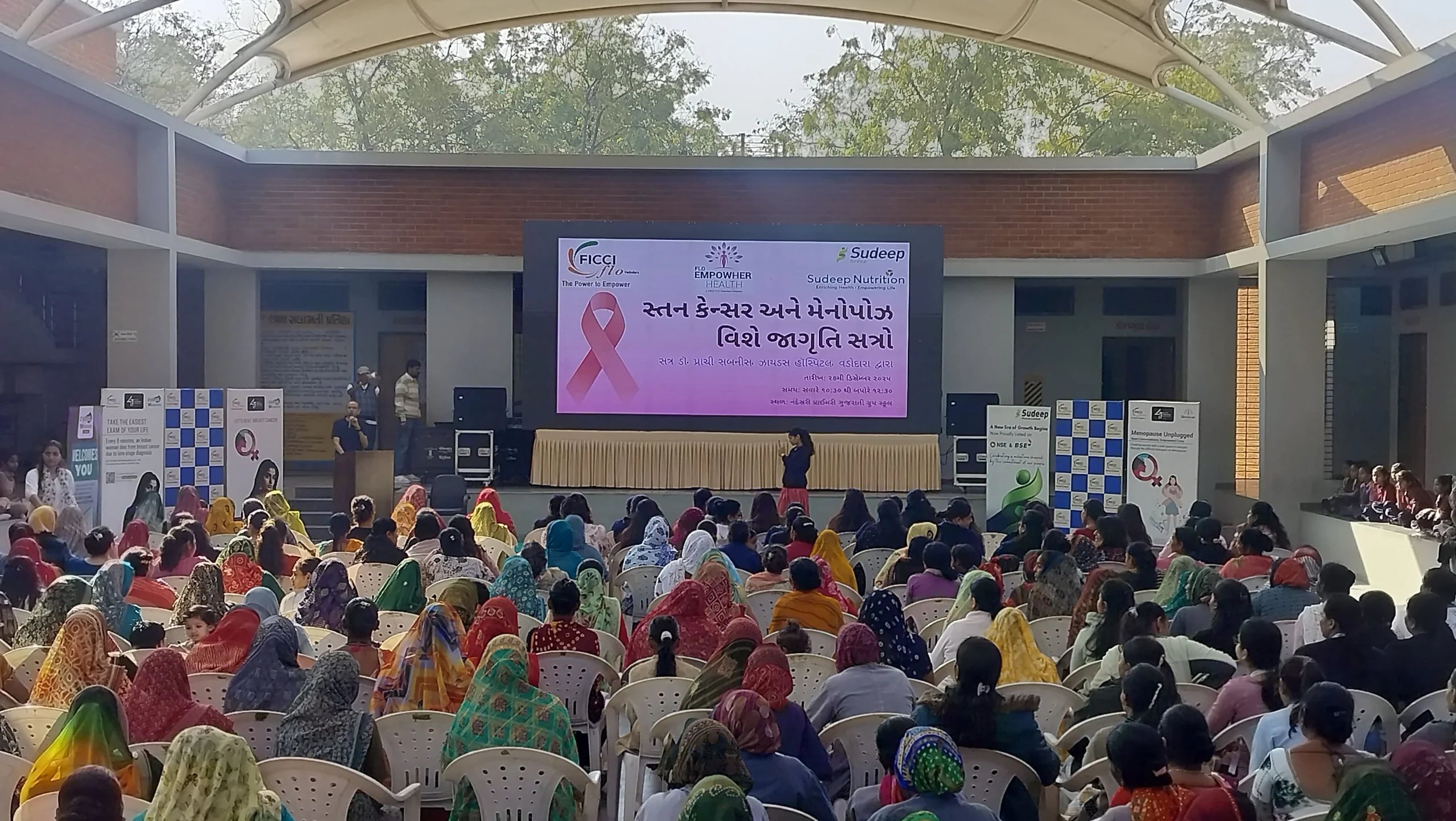 FLO Vadodara, in collaboration with Sudeep Nutrition Pvt. Ltd., organized a Breast Cancer Awareness session at Nandesari Primary Gujarati Group School. The programme was conducted for school girls and their mothers, along with the female staff of the Sudeep Group, school faculty, and women from the nearby village community.