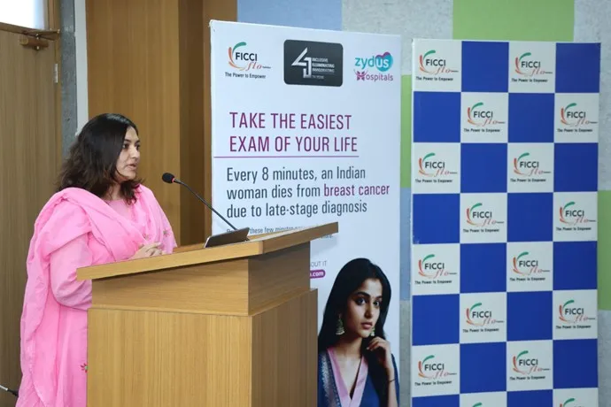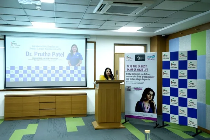 FLO Vadodara, under the National Initiative – FLO Kavach organized a Breast Cancer Awareness Program with the support of Zydus Hospitals, Vadodara. The objective of the session was to enhance awareness among members regarding the early detection, prevention, and awareness of breast cancer. The program impacted 74 women and featured Dr. Prutha Patel, Consultant of Medical Oncology, Zydus Hospitals, Vadodara. The medical expert conducted an informative session, providing insights on risk factors, screening methods, and treatment advancements. Members engaged in the session and Q&A and a free screening facility was also arranged at the venue for those interested.