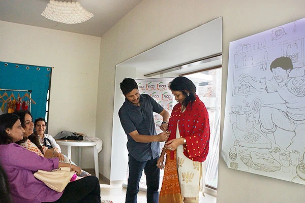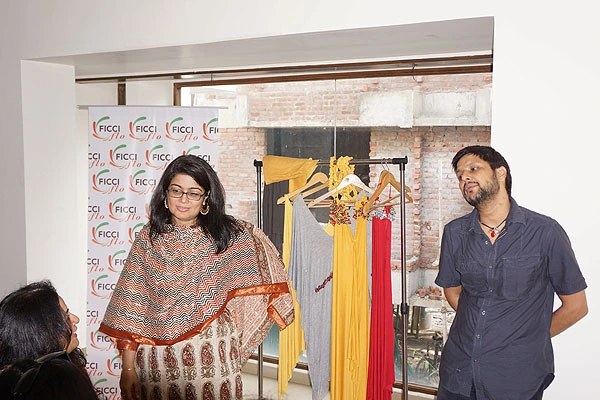 A very innovative and extremely interesting workshop titled ‘Button Masala’ was organised by Ahmedabad Chapter. Fashion designer Anuj Sharma, NID graduate and LFW participant conceptualised the unique design of using buttons, buttonholes and rubber bands into unstitched fabrics to create designer silhouettes.