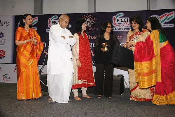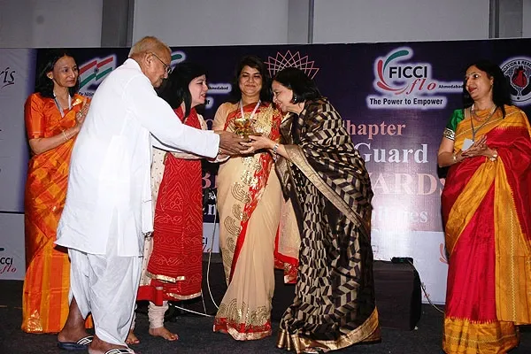 The event was attended by more than 400 people including members. Our Dignitaries were Pandita Anuradha Pal (world renowned tabla virtuoso, multi-percussionist and music composer) and Guruji Narayana whom we felicitated. Dignitaries off the dias were Smt. Kumudini Lakhia, Mrs. Gita Goradia, Ms. Kiran Sethi, Ms. Purvi Doshi, Ms. Samira Rathod, Mrs. Urmila Kanoria and many more.