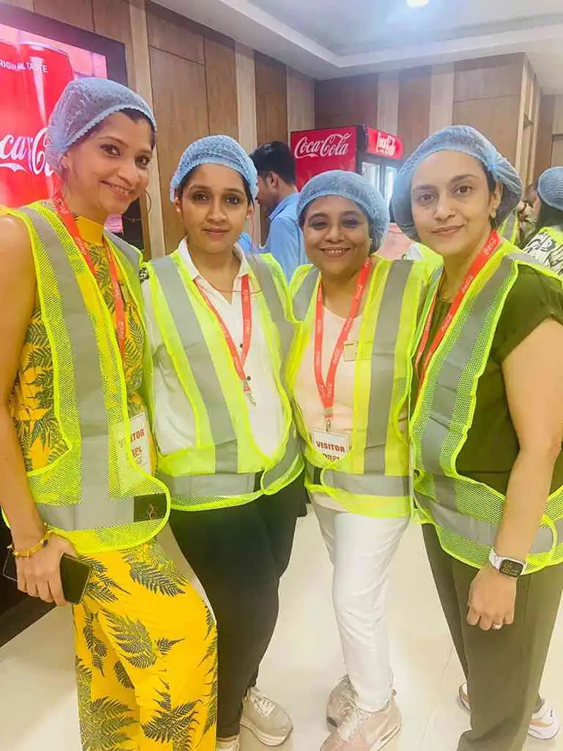 On reaching the members were briefed about the process of manufacturing and the details about the operations of the plant through a presentation. They were also provided with the necessary gear for maintaining hygiene and were segregated in smaller groups to see the different sections of the plant. The employees joined as guides and gave detailed information about every step of the processes including how the concentrate and water are mixed to make a particular drink, following which a small piece of pet plastic is blown into a bottle filled with the beverage, capped, labelled, finally packed into crates, all in an automated way.