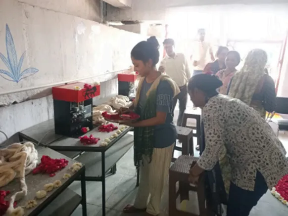 YFLO Ahmedabad, in collaboration with Paryavaran Mitra and Manav Sadhna, transformed a space under a flyover at Khodiyar Nagar – previously used for scrap collection – into a training and production center for women. This initiative, supported by the Ahmedabad Municipality, has empowered a group of former ragpickers by giving them dignified, skill-based employment in cotton wick (divet) making.