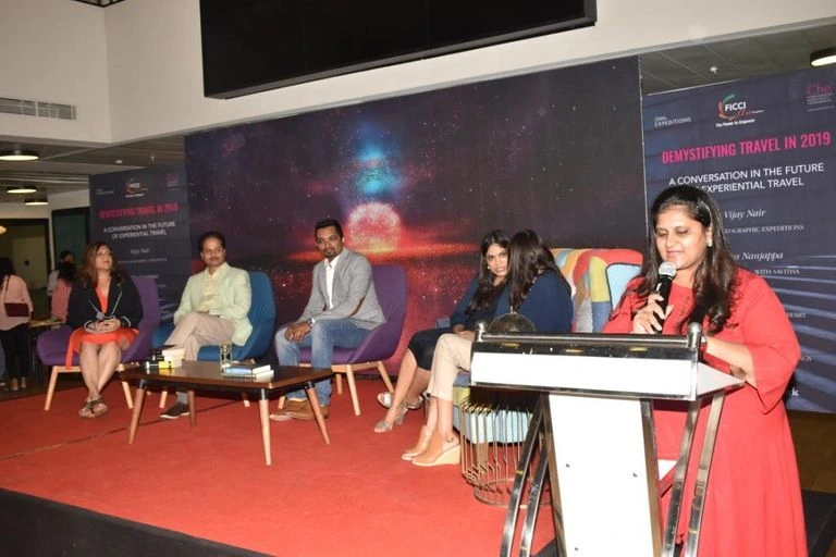 Vithika Agarwal, added that travel destinations had definitely evolved to more exotic locales however insisted that families should prioritize and choose a place that all guests are comfortable to fly to. Even though places like Turkey, Morocco, and Thailand are hot favorites, the most favorite choices have always remained Goa and Rajasthan with the Indians. Savitha Nanjappa, who was just back from Bali ( on work) gave the audience great advice on the benefits of changing your normal work meetings into a working holiday. The added benefits of working together in a calm and new place definitely open up the mind and gives an immense boost to the morale of employees.