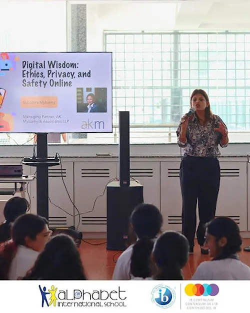 Ms. Subathra Mylsamy, Legal Vertical Head of FLO Chennai, addressed the students of Alphabet International School on critical aspects of Digital Media, highlighting both the pros and cons of its widespread use on September 20th, 2024.