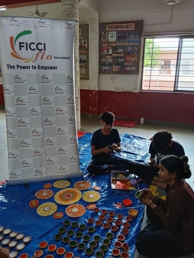 FLO Ahmedabad, under the leadership of Chairperson Ms. Madhu Banthia, organized a “Diya & Rangoli Making Workshop” under their urban skilling initiative, focusing on skilling young women and girls at Manav Gulzar Center, Ahmedabad. Urban skilling initiative focuses on empowering women by equipping them with employable skills to generate income.