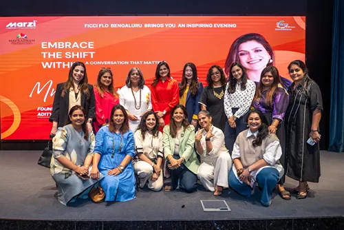 FLO Bangalore, under the leadership of Chairperson Ms. Dekyi Yangtso Chawla, hosted an intimate and powerful fireside chat, “Embrace the Shift Within,” featuring Mrs. Neerja Birla as the speaker. Mrs. Neerja is a global mental health leader, champion of women’s wellness, and Founder & Chairperson of the Aditya Birla Education Trust.