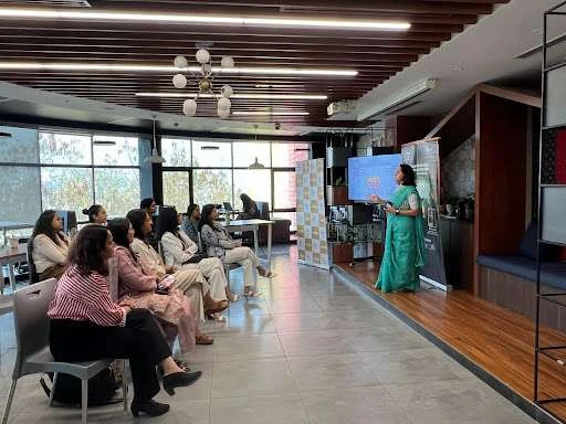The session commenced with an exclusive tour of WE Hub, providing attendees with an in-depth look at the ecosystem supporting women entrepreneurs in India. This was followed by an inspiring and interactive session led by Ms. Sita Pallacholla, CEO of WE Hub, who shared valuable insights on navigating the entrepreneurial landscape and leveraging marketing strategies to scale businesses effectively.