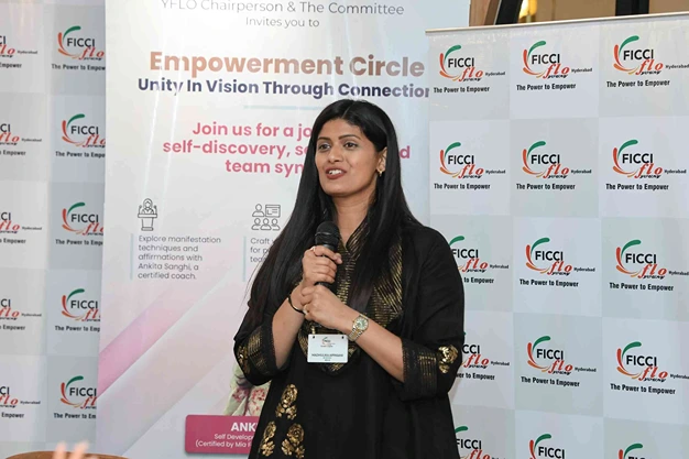 The Young FICCI Ladies Organisation (YFLO) Hyderabad Chapter recently hosted an empowerment session on “Unity in Vision- Through Connection” on April 8th, featuring renowned Self Development and Manifesting Expert Ankita Sanghi. This session, championed by YFLO Chairperson Ridhi Jain, aimed to equip the working committee members for the 2024-25 term with the power of manifestation for achieving both personal and collective goals.