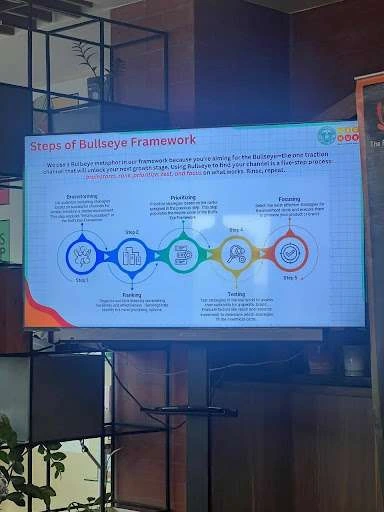 Hybrid & Emerging Channels were explored, emphasizing a mix of Paid, Earned, and Owned strategies for business growth. The Bullseye metaphor was used to guide participants toward discovering the most effective traction channel for their business growth. The five-step process discussed included: