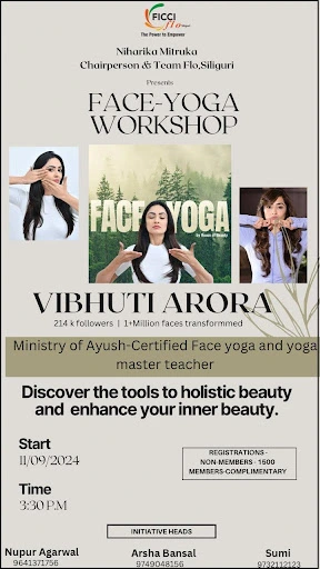 FLO Siliguri hosted an enlightening and engaging session on face yoga, conducted by the renowned face yoga expert Vibhuti Arora on September 11th, 2024. This event, organised for members and non-members, aims to promote wellness and self-care through face yoga’s ancient and increasingly popular practice.