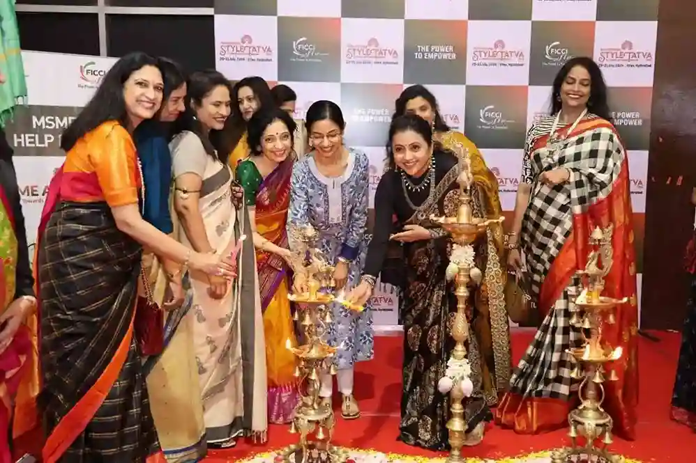 The esteemed Chief Guest, TV & Film Presenter, Actor, Entrepreneur, Suma Kanakala, inaugurated FLO StyleTatva, the FLO-assisted Entrepreneurs Pavilion, and the vibrant Telangana Food Pavilion.