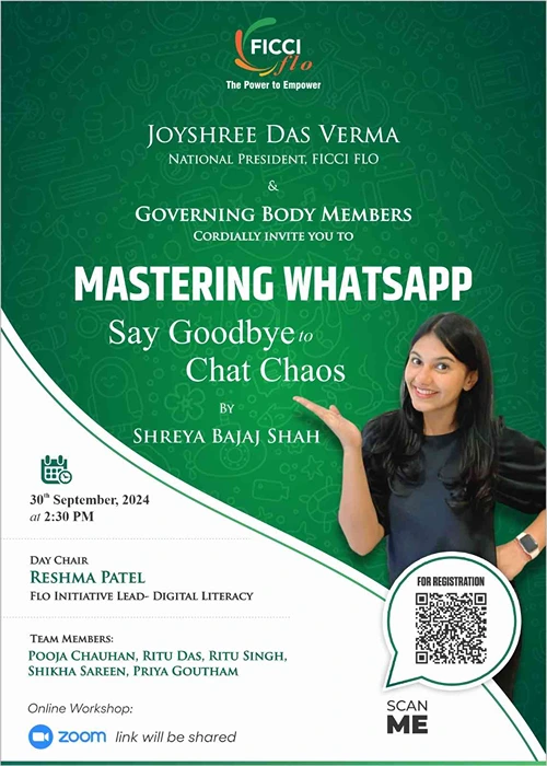 FICCI FLO hosted a highly informative virtual session titled “Mastering WhatsApp – Say Goodbye to Chat Chaos!” This event was organized as part of the FLO Digital Literacy Initiative, designed to help members streamline their WhatsApp experience and maximize the app’s features for efficient communication management.