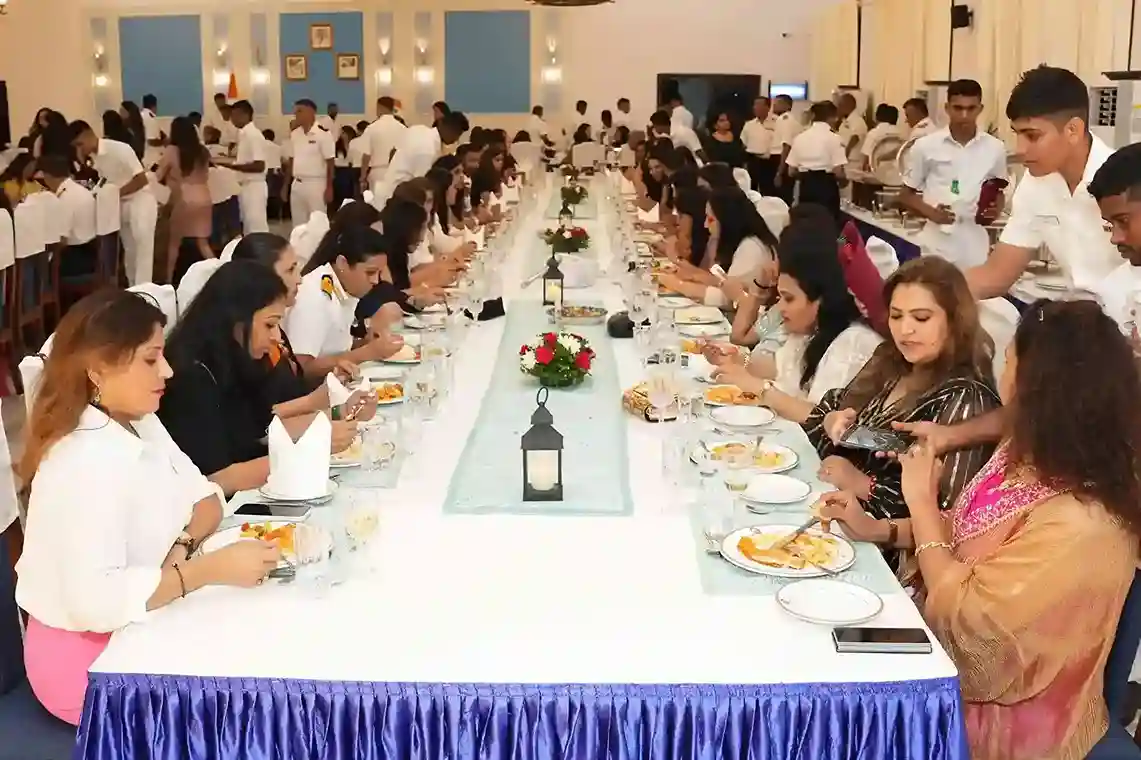 The day featured a delightful breakfast prepared by the Navy and an exclusive lunch hosted by Vice Admiral Sanjay J Singh, Chief in Command. This luncheon provided a rare opportunity for attendees to engage with high-ranking naval officers and discuss strategic and operational aspects of the Navy. The formal dinner at the CommanderÍs Mess, attended by Rear Admiral Ajay Kochhar, Fleet Commander RAdm Praveen Nair, and other esteemed officers, offered a chance to experience the NavyÍs traditions and camaraderie.