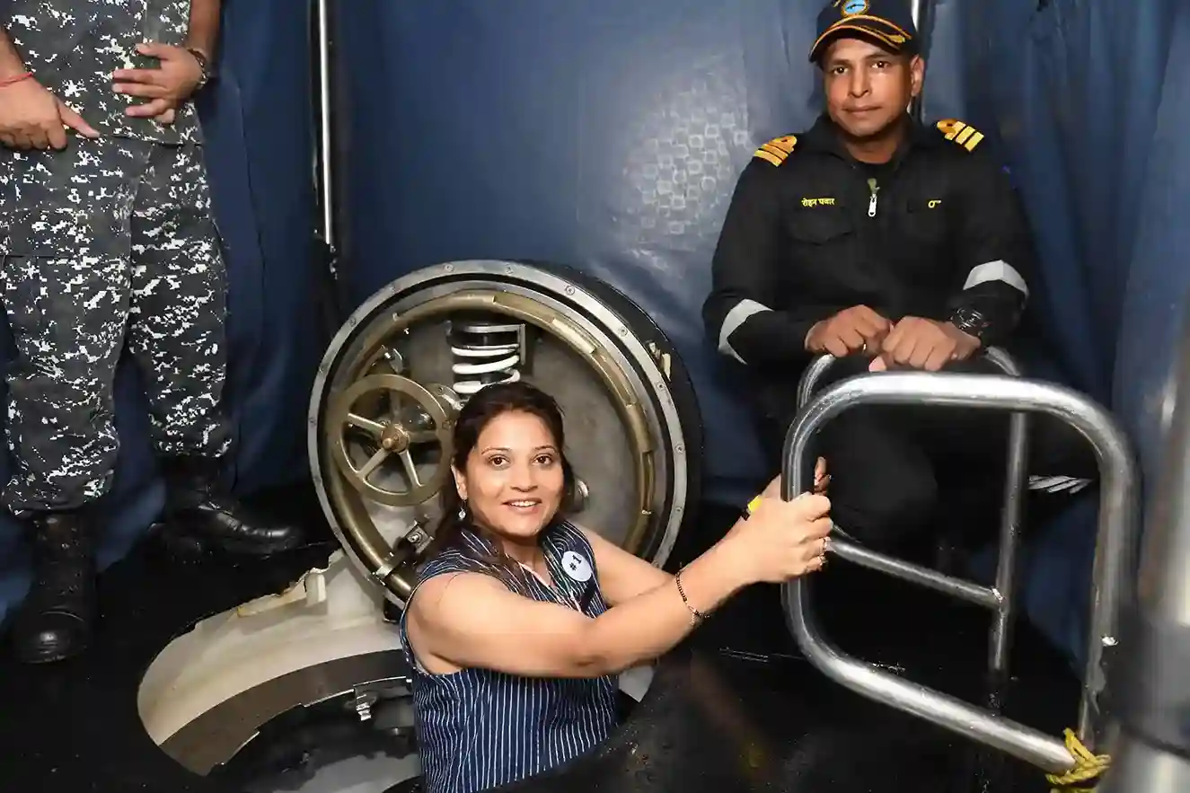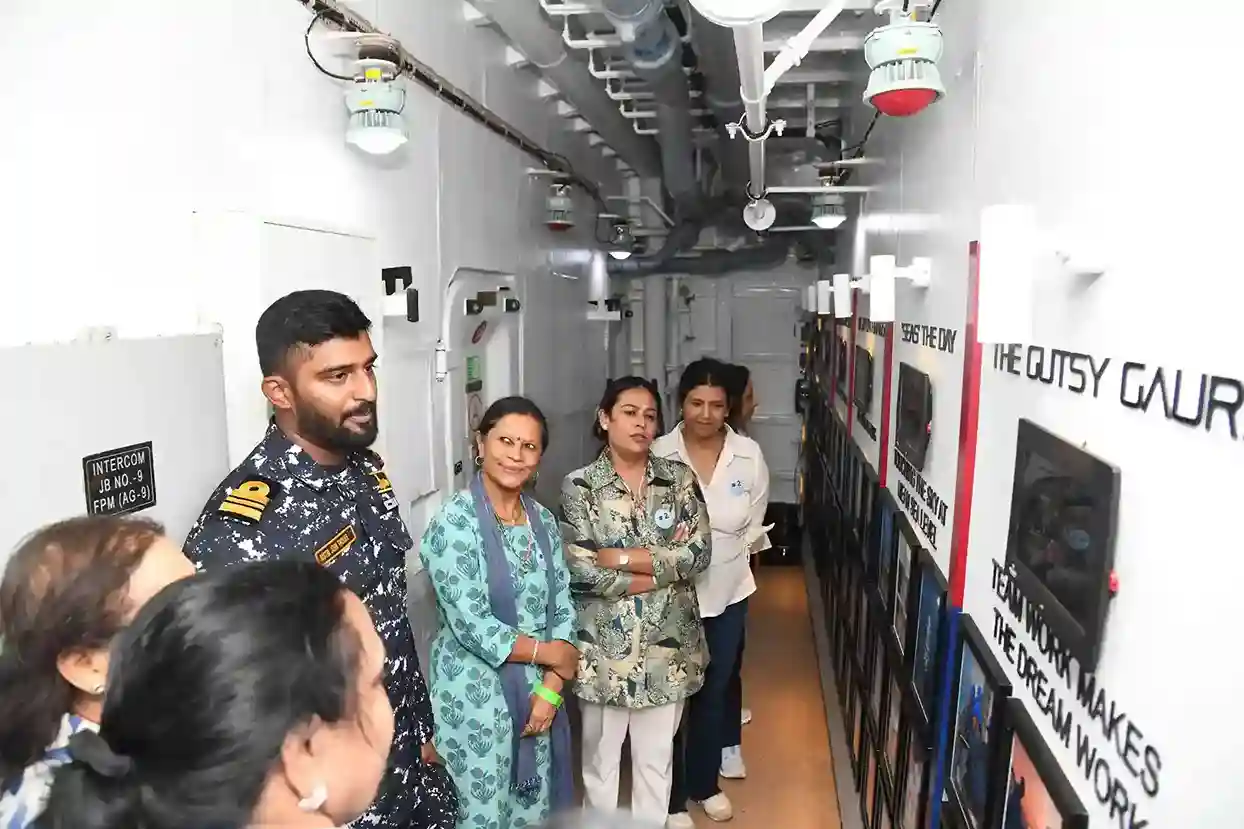 The participants were then divided into three groups for an immersive tour experience. One group visited the warship INS Mormugao, exploring its radar systems and luxurious amenities. Another group toured a submarine, experiencing the confined spaces and advanced technology that allow these vessels to operate underwater. The third group explored the dockyard, witnessing the maintenance and logistical operations essential for fleet readiness.