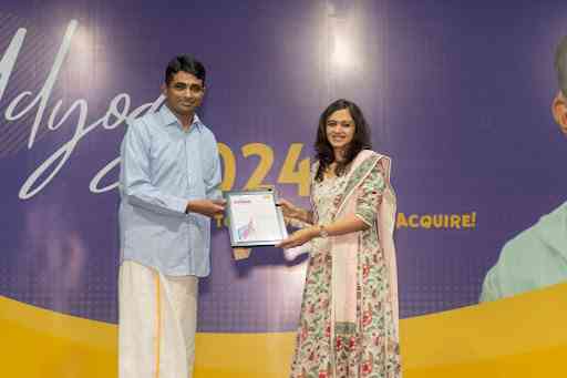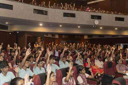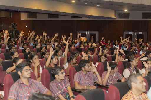FLO Chennai Chairperson, Ms Divya Abhihek addressed a large gathering of 750 students in Bharatiya Vidya Bhavan, Chennai as part of Udyog 2024, an event focussed on urging students to work to become, and not just to acquire.