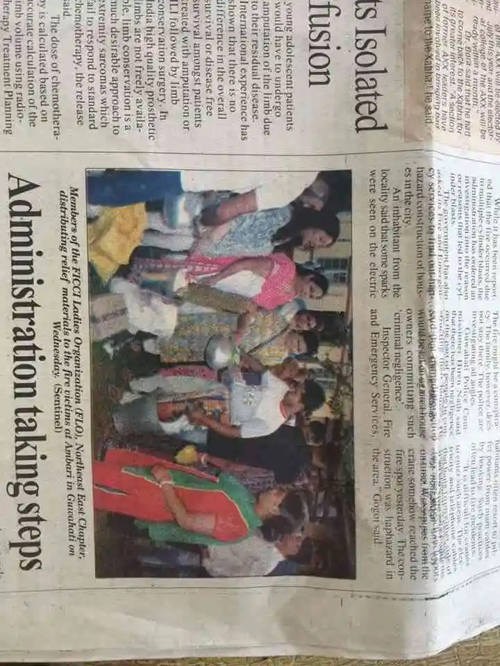 In the aftermath of a devastating fire that broke out in Ambari, Guwahati on 2nd May 2017, members of FLO North East Chapter rose to the occasion and came forward to provide immediate relief to 46 families whose homes were reduced to cinders. Members donated generously and in the presence of local administration on 3rd May 2017, distributed household essentials and food items to the affected families.