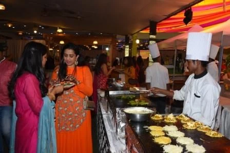 The lavishly spread out Gayatri Vihar was decked with every possible chaat counter especially brought in for the event from Agra and Benares, jhaal muri from Kolkatta, Turkish ice cream and the khaala khatta ice gola completed the cold deserts while the hot jelebis and elaborate paan stall kept the women keep going back for more. Just the tip of the iceberg since the women were at a loss of words at the choice of food being served!