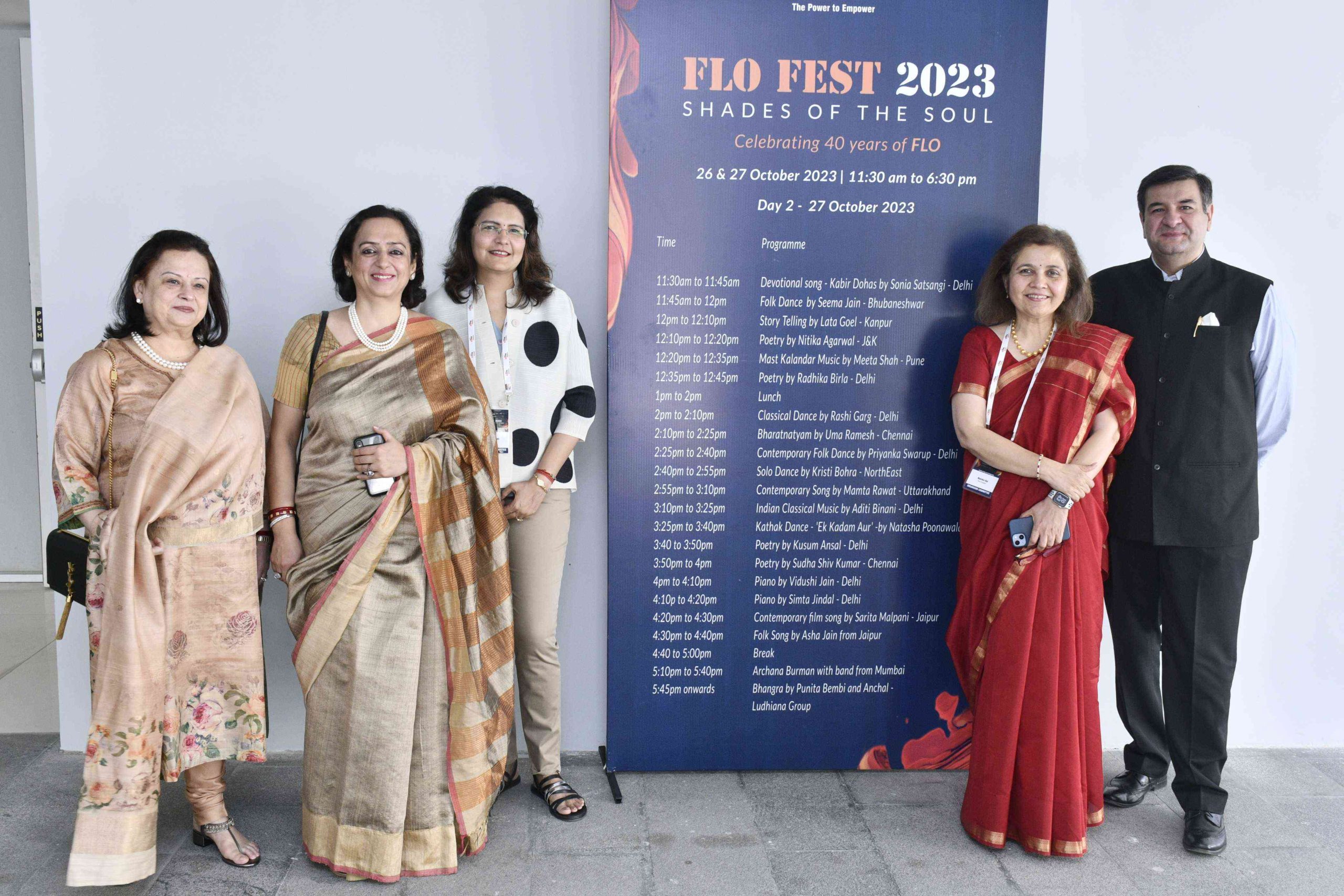 Under the leadership of Sudha Shivkumar, the 40th National President of FLO, the FLO Fest Organizing Committee, comprised of Malvika Rai, Past President; Ritu Vadehra, GB Member; Rekha Lahoti, GB Member; Sabina Sanghvi, GB Member; Neelam Seolekar, GB Member; and Dr. Aarti Gupta, GB Member, meticulously curated the event.