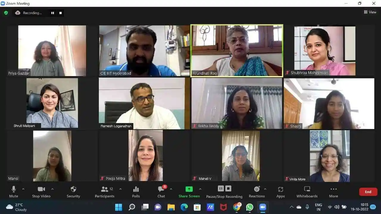 The Empowerment Committee of FLO Hyderabad in association with CIE-IIIT Hyderabad organised a 2-day online Incubation Bootcamp on 19 & 20 October, 2022 which was attended by 7 member-entrepreneurs – Pooja Mitra, Shruti Mallpani, Rekha Marri, Mahati Velamati, Mansi Vuppala, Sashimita Yelleni of Hyderabad Chapter and Vinita More from FLO Kolkata. The participants learnt about evaluation of the business idea, problem-solving, identifying the USP and gauging the competition, understanding and winning customers, revenue streams and models, growth financing, customer-segments and value models, marketing strategy, preparation of business plan and pitch deck, and more…FLO Hyderabad would like to thank CIE@IIITH, Prof. Ramesh Loganathan, Pankaj Dwivedi and his team for facilitating the program, and Arundhati Rao, Ismail Akbani, Chintan Oza, Sandip Poddar, Viveck Varma, Anupriya Agarwal, and Ravi Warrier who stepped in so graciously to mentor the participants.