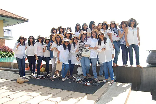 The eve saw everyone in black with a touch of gold or metal. All danced in groups & partied till wee hours of the morning to the never ending music played by the DJ. A bright next morning had the Pari- launge waiting for all the ladies in florals to board her for the next few hours of the afternoon while she sailed on the river & she bid goodbye to all the members in the late afternoon while they all got ready to get back into the busy city.