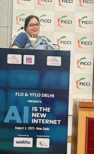 FLO & YFLO Delhi organised an informative and interactive session on “AI Is the New Internet” on August 3, 2023. The speakers were Arihant Jain, co-founder of Seekho.ai, Mr Ansh Mehra, a leading User Experience & User Interface (UE/UI) expert, Mr Rajiv Makhani, eminent tech guru and Ms. Anju Chaudhary, the Senior Director of Sales at Builder.ai.