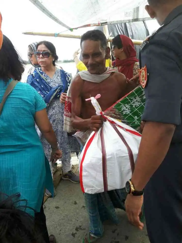 Our members transversed through dangerous flood waters to be able to reach the far flung areas which were inundated by the severe bout of floods. Carrying relief material for 100 odd families, our team could reach and succeed in distributing these materials to the most needy.