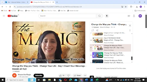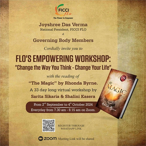 FICCI FLO’s 32 day long virtual workshop, “Change the Way You Think, Change Your Life,” which commenced on September 2, 2024, was an initiative aimed at empowering women through mindset transformation. The workshop, designed around the principles of the Law of Attraction and insights from “The Magic” by Rhonda Byrne, sought to help participants enhance various aspects of their lives, including professional success, financial independence, personal relationships, and mental and physical well-being.