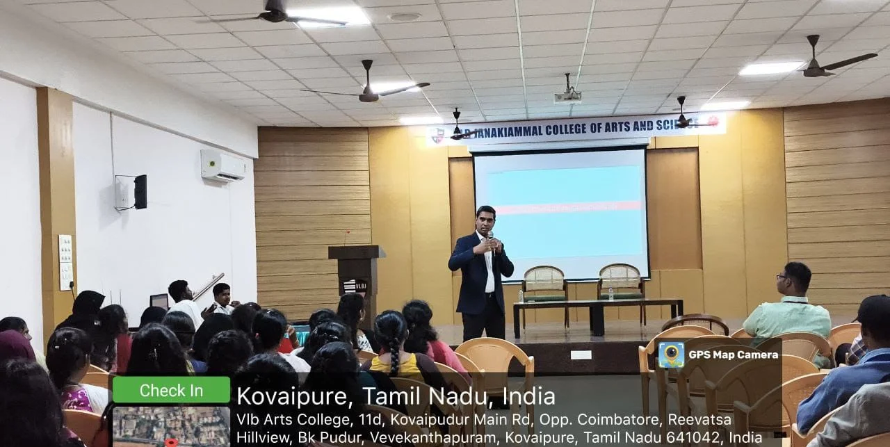 Dr. D. Kalaivani, Principal, stressed financial discipline as a life skill, while Dr. D. Brindha, Director of Academics and Research, urged students to apply knowledge for independent decision-making. The interactive session saw enthusiastic student participation through discussions on investments, savings, and wealth creation. The program was well-received as part of the college’s continuous efforts to integrate financial literacy and entrepreneurship into student development.