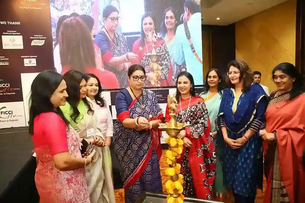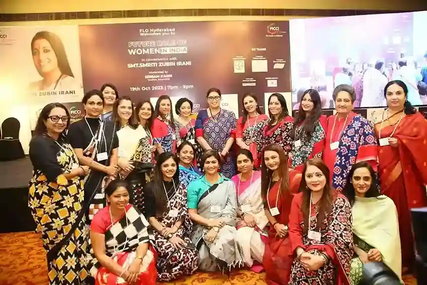 Union Minister Smriti Zubin Irani engaged in a conversation with FICCI Ladies Organisation (FLO), Hyderabad Chapter, discussing the Future Role of Women in India, moderated by journalist and author Sriram Karri. Smriti Irani shared insights on success and failure, underlining how both define one’s journey. She discussed the Women’s Reservation Bill, emphasizing that it didn’t infringe on men’s rights.