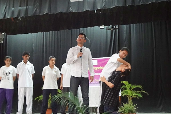 The main self-defence tactic, according to Mr Rishikesh , is the mind. ‘Freeze”, “Flight” Or “Fight” are the three normal responses when someone is attacked. Instead, one has to react instantly and escape the attack even if it means clawing the attacker with nails, car keys, pen, anything handy. This gives the victim precious seconds to run (flight). Along with 6 of his students, he demonstrated some very effective techniques that any normal person (not usually trained in martial arts ) can use and the vulnerable points of an attacker that should be targeted, like the neck, the elbow nerve , upper thigh, wrist, fingers (his advice …break them ).