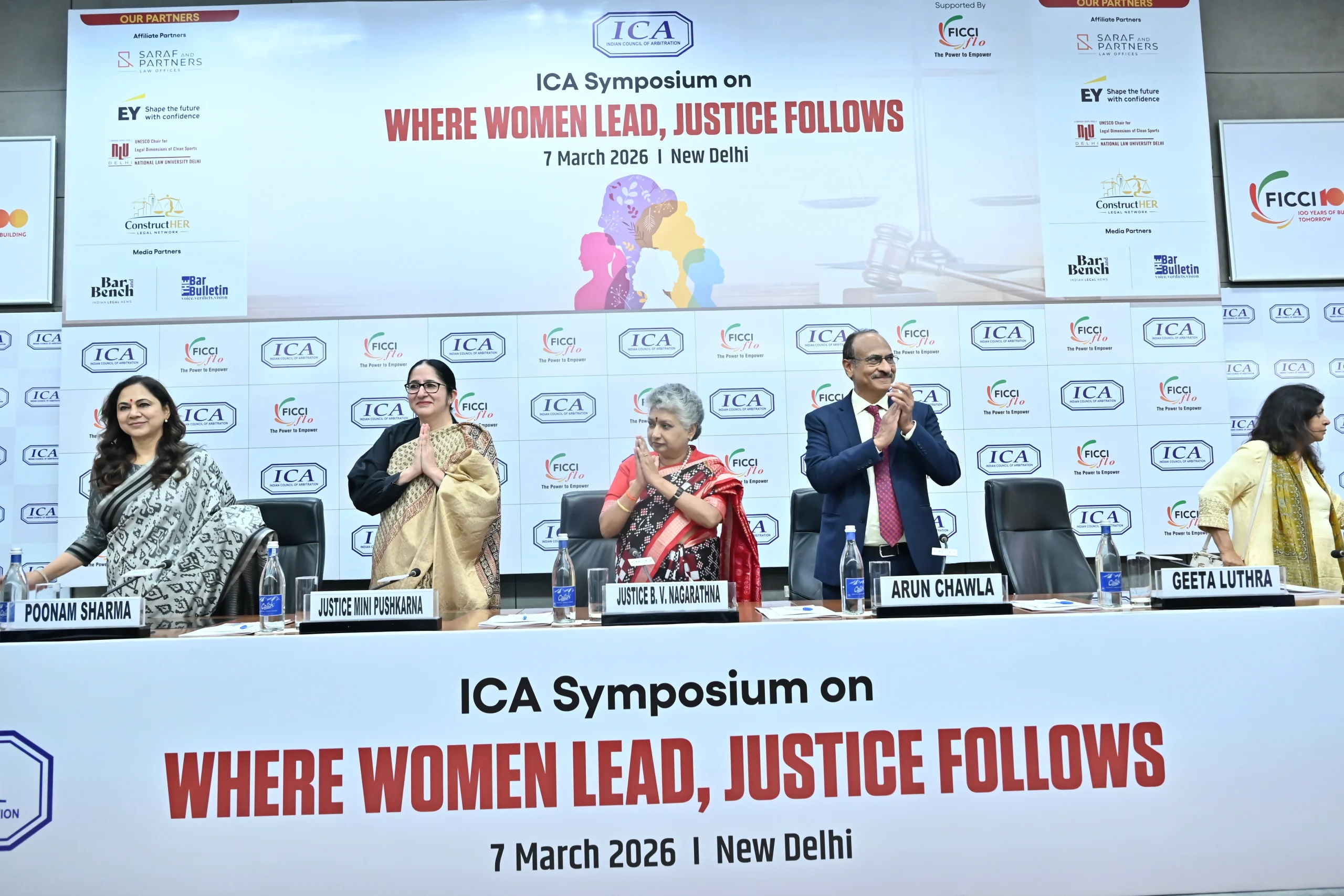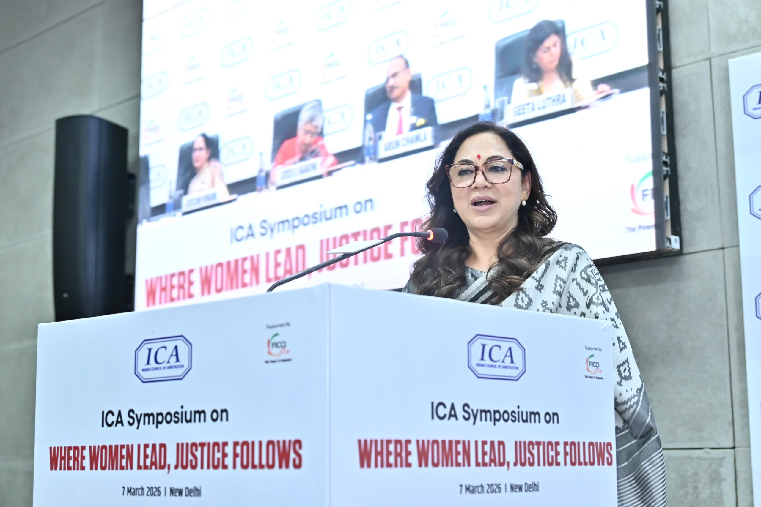 The Indian Council of Arbitration (ICA), supported by FICCI FLO, hosted the symposium “Where Women Lead, Justice Follows” on 07 March 2026 at Federation House, New Delhi. The insightful session brought leading voices from law, arbitration, and public service together for a meaningful dialogue on boosting gender diversity in the legal profession.