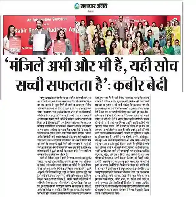 Chairperson, Ms. Minal Jain ,on the occasion , spoke about the reality of the world beyond our perception. & pitched to all the members to discover their own individual definitions of success & it’s benchmarks .She said ,hard work, adversity & perseverance always play a huge role on the path to success. Initiating the session, veteran actor Kabir Bedi spoke about his connect with Rajasthan through his many successful films shot around the state, outlined his career path, the adversities and motivations on the path to success. He also spoke about how Acting is a tough career choice and at the end of the day all the glamour is not worth one life.