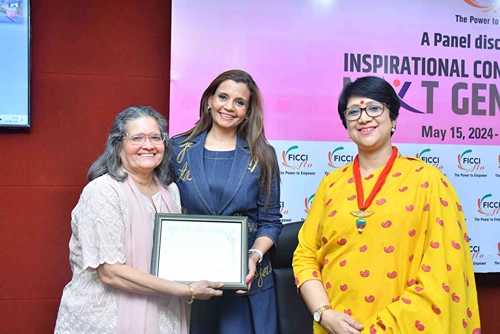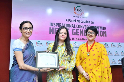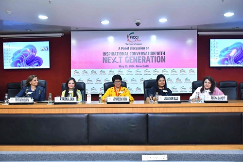 FICCI FLO organised an enriching and motivational session titled “Inspirational Conversation with Next Generation Leaders” at FICCI. The event aimed to inspire and empower emerging leaders. The session featured distinguished panelists- Dr. Jalachari Ella, Head of Corporate Strategy at Bharat Biotech International Ltd.; Avarna Jain, Vice Chairperson of Saregama and Chairperson of RPSG Lifestyle Media; and Priti Rathi Gupta, Founder of LXME.