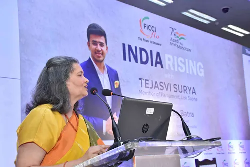 It was an excellent opportunity to hear the young, dynamic, and fiery political leader in conversation with a renowned media veteran. While addressing the audience, Shri Surya said that women entrepreneurship is one of the vehicles for realising a more equal society as more women take on entrepreneurship, it serves as a catalyst for socio-economic transformation.