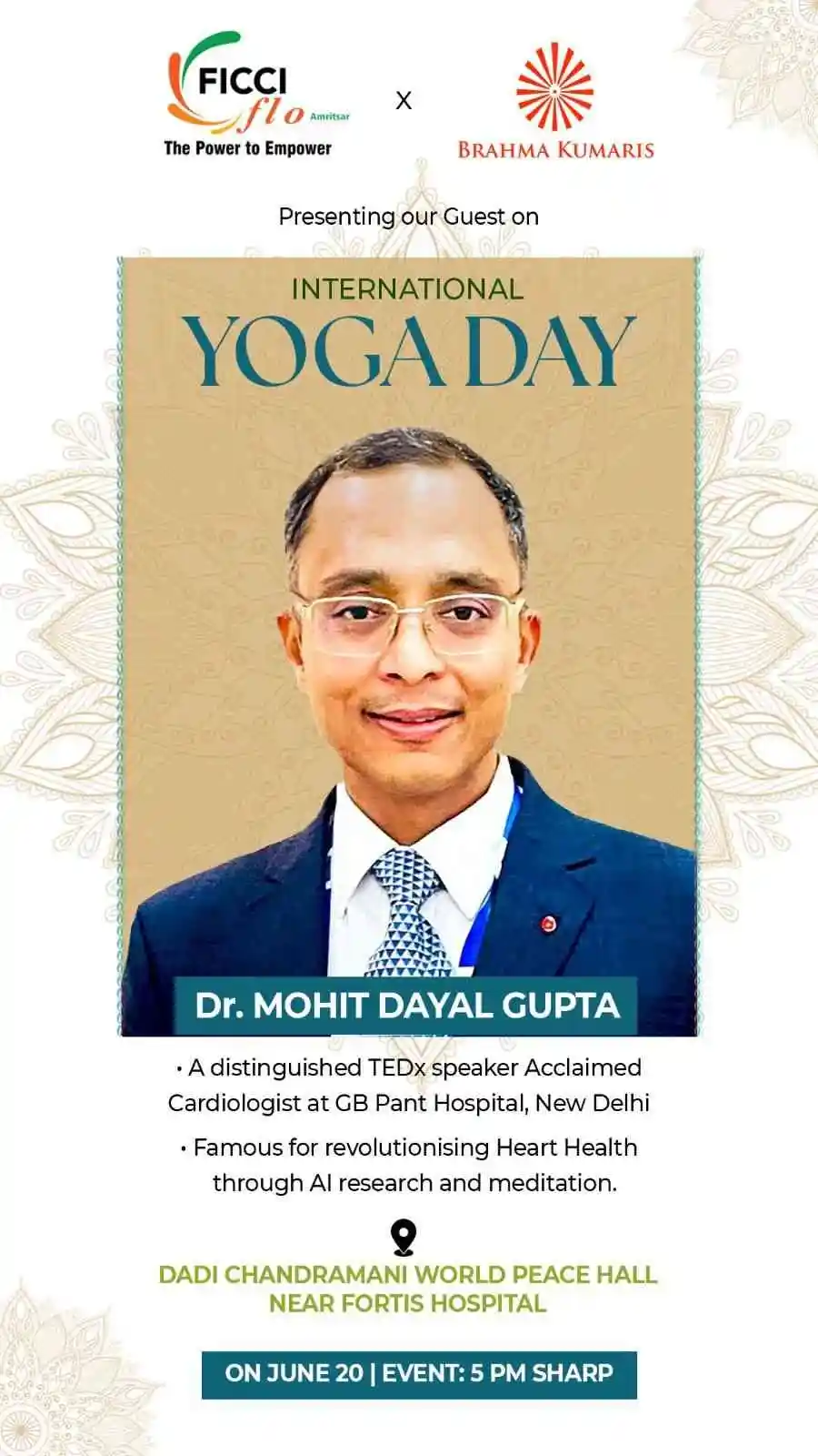 On June 20, 2024, FICCI FLO Amritsar commemorated International Yoga Day with a special event titled “International Yoga Day: Yoga for Women Empowerment,” focusing on holistic health and spiritual well-being. The initiative featured a roundtable discussion with distinguished speakers, delving into topics such as heart health, spiritual well-being, and mental growth, aimed at empowering women through knowledge and awareness.