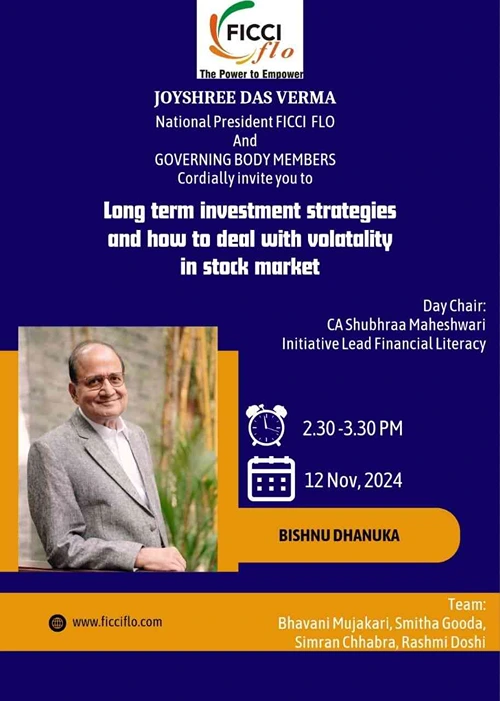 FICCI FLO organized a virtual session on “Long-Term Investment Strategies and How to Deal with Volatility in the Stock Market” with Mr. Bishnu Dhanuka, Co- founder of Millennium Mams on November 12, 2024. Under the National Initiative Financial Literacy, this successful and insightful session by Mr. Dhanuka was well enjoyed by the National President Ms. Joyshree Das Verma, and all the members.