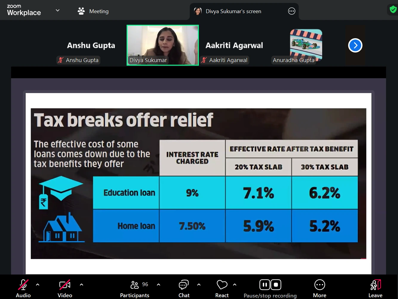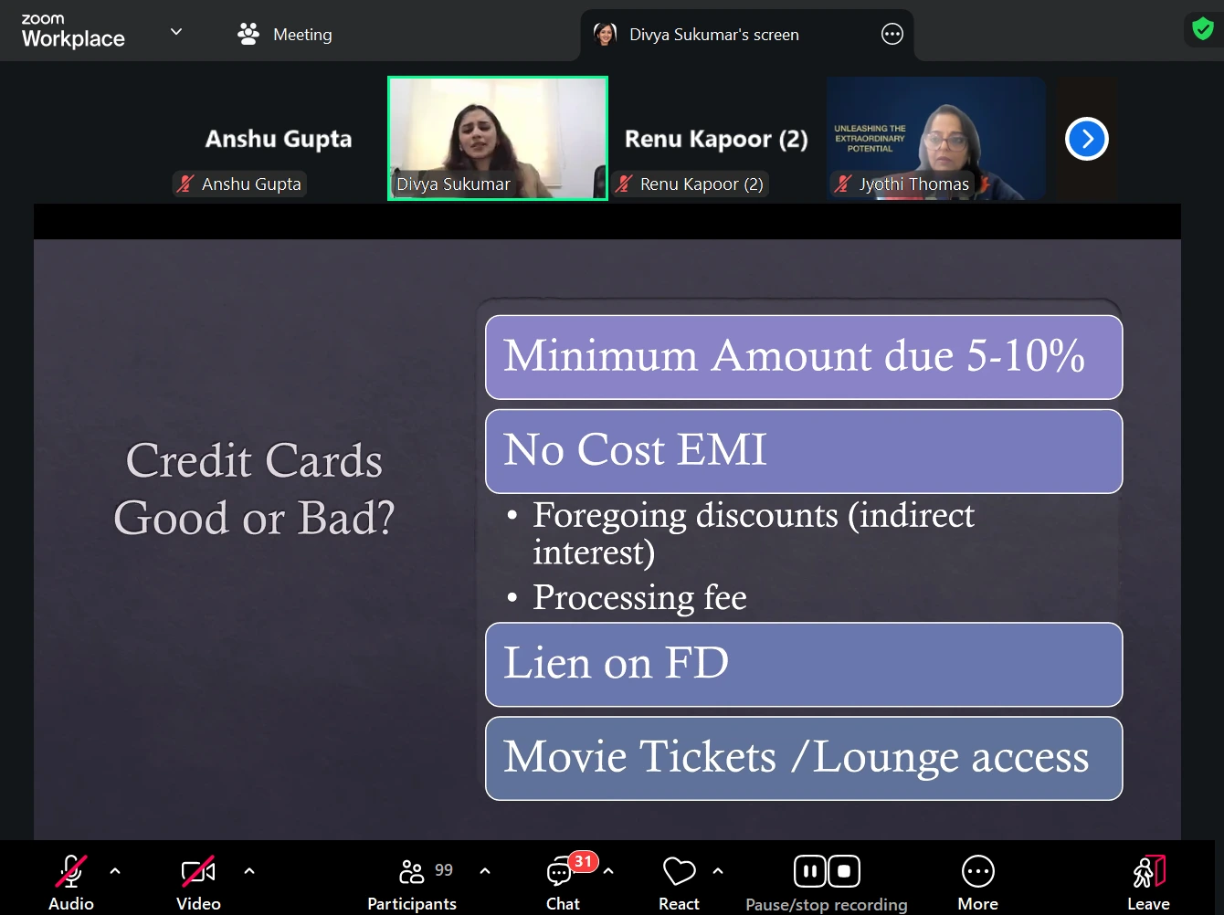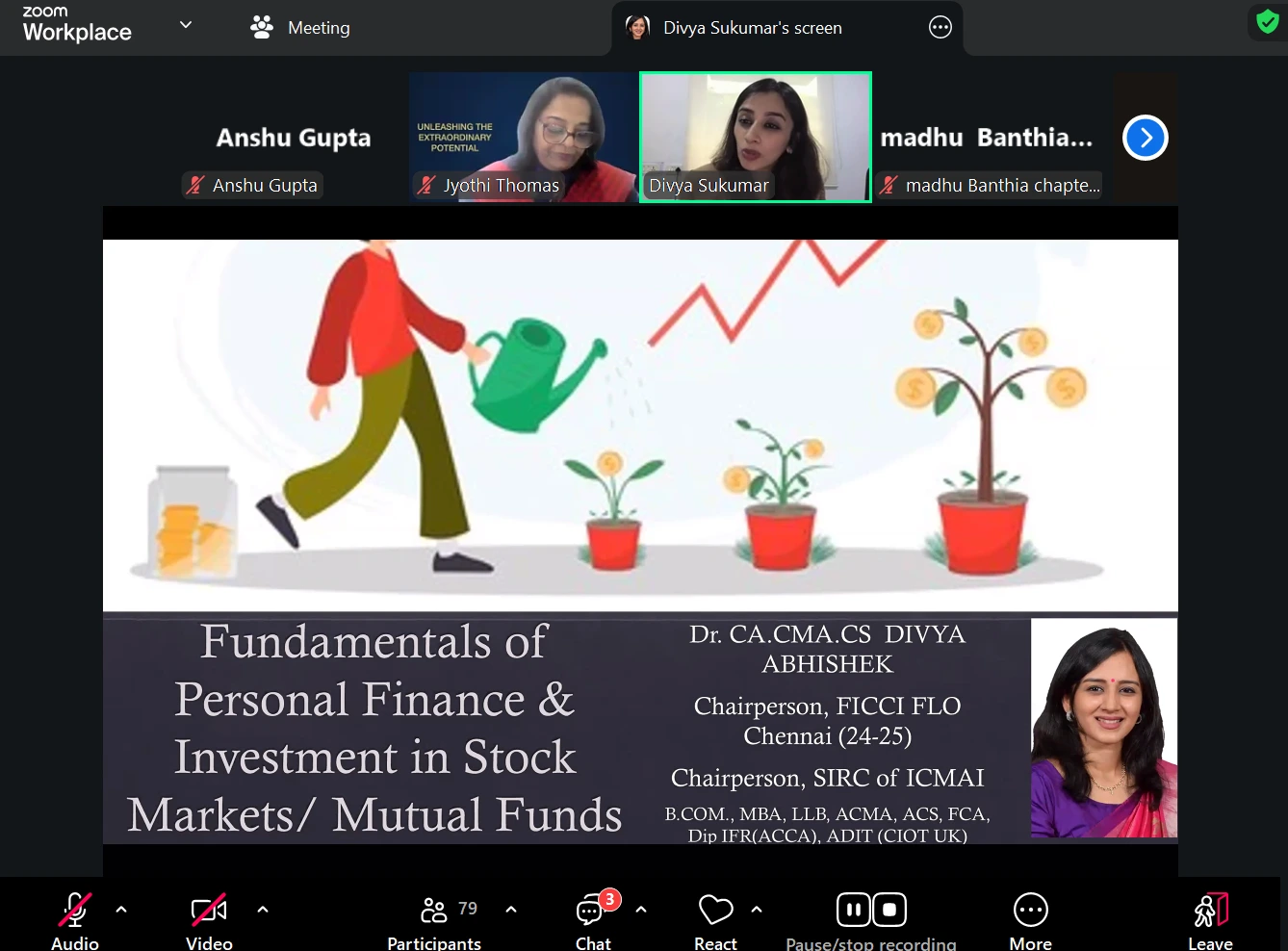 Then, the session covered investment strategies, including mutual funds, stocks, and gold investments, with Divya advising against digital gold and encouraging participants to consult advisors before making major investment decisions.