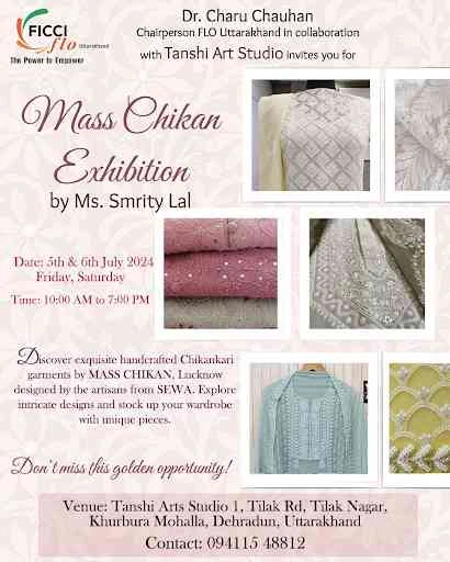 FLO Uttarakhand Chapter organized an exhibition titled “Mass Chikan,” celebrating a legacy of excellence in chikankari. This event highlighted the journey from humble beginnings to global recognition. Crafted by SEWA artisans from Lucknow in collaboration with Tanshi Art Studio, owned by Ms. Smrity Lal, a renowned artist and social worker of Uttarakhand, the exhibition preserved timeless traditions while embracing innovation. It was a great success, attracting numerous interested visitors.