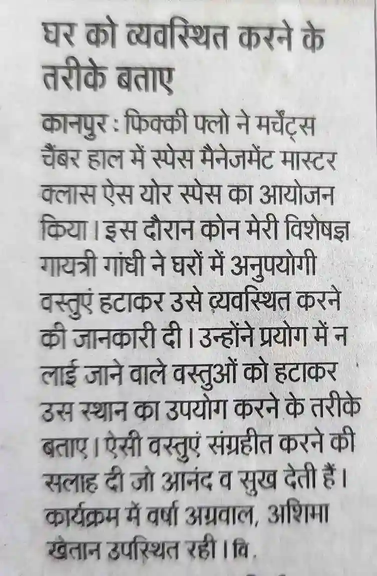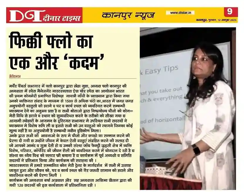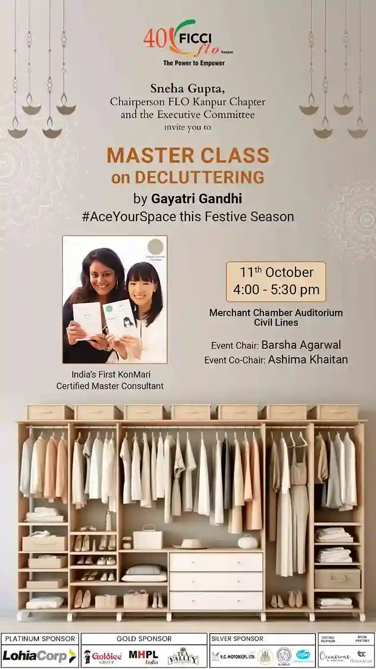 FLO Kanpur had organised a master class on decluttering by India ‘s first Konmari certified consultant Mrs Gayatri Gandhi. The event was attended by 125 members, and everyone thoroughly enjoyed the fun learning session .